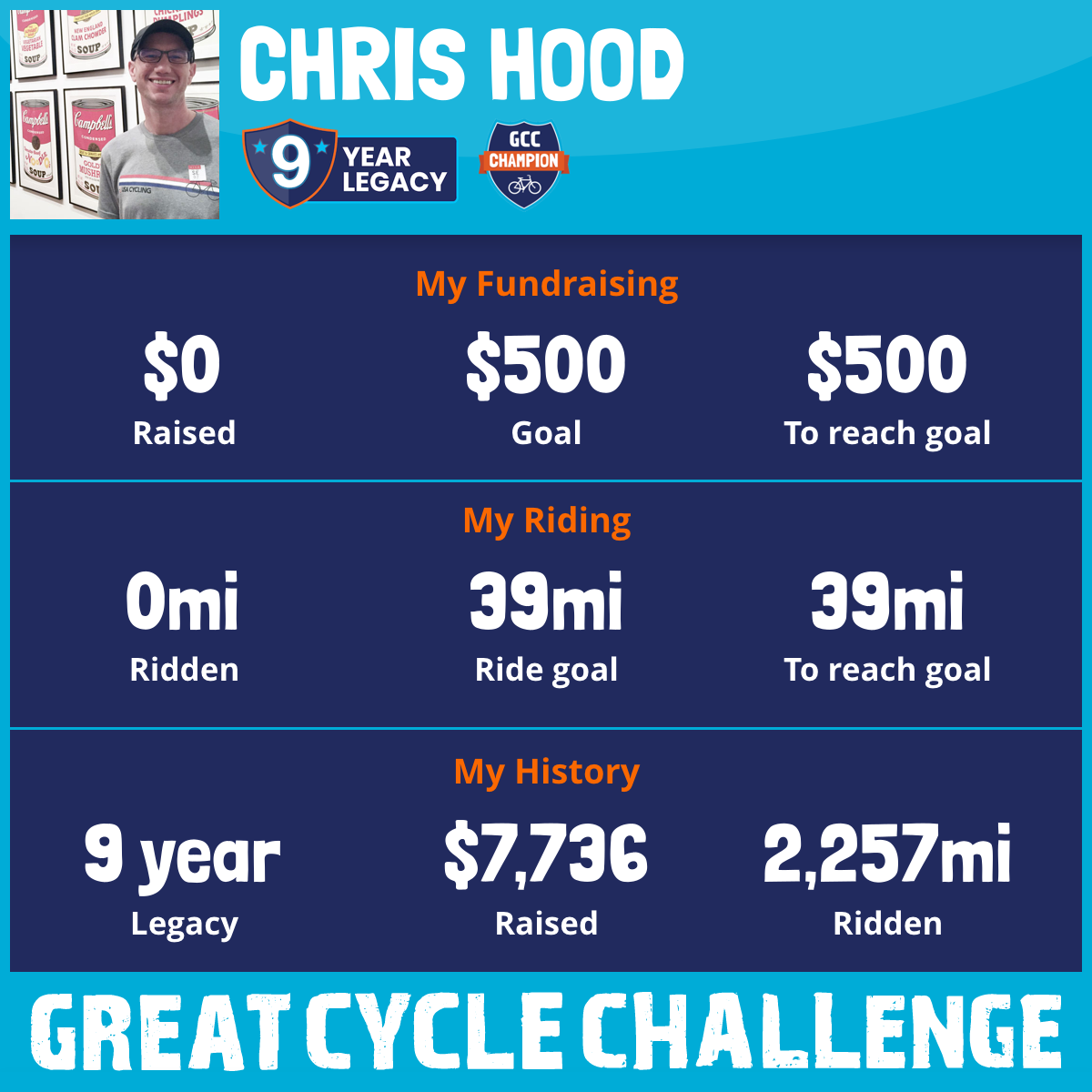 I am riding 39 mi in memory of Charles Giles. Please sponsor me and support my challenge to fight kids' cancer and save little lives.