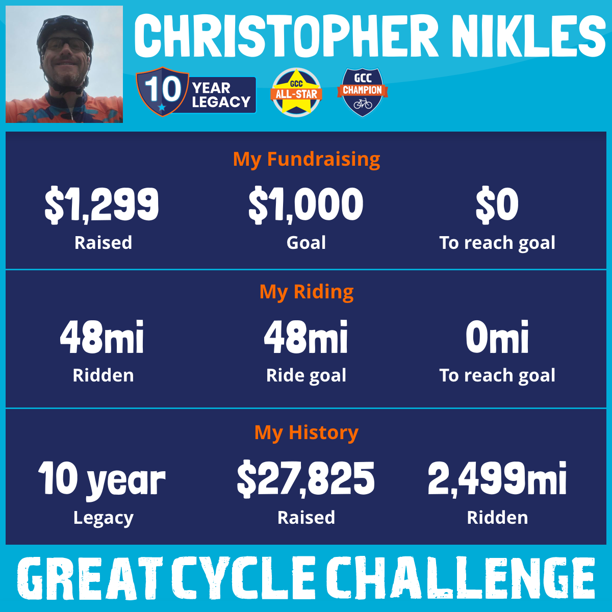 302 mi Ridden$3,365 Raised2024