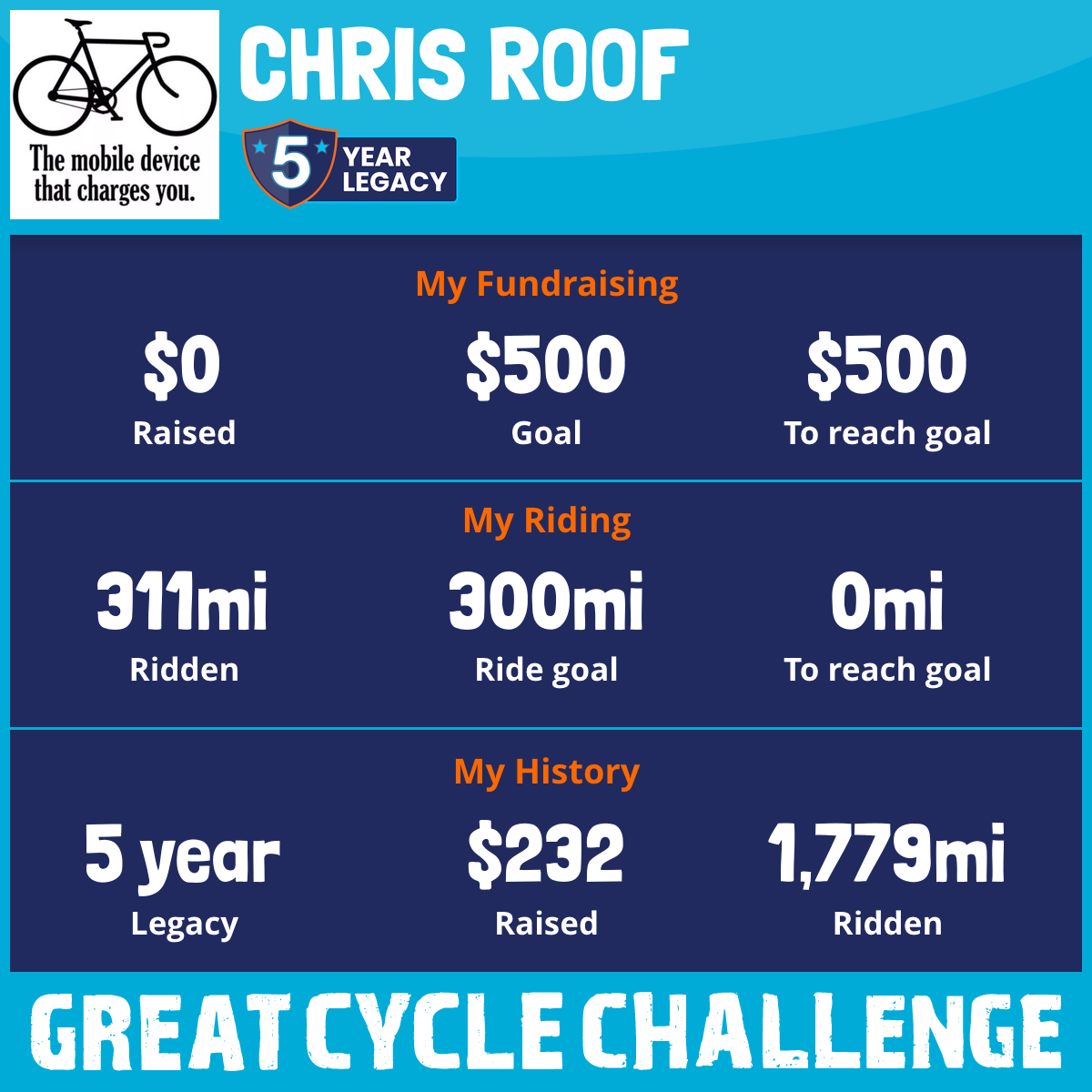 I am riding 300 mi in memory of Arlene Roof. Please sponsor me and support my challenge to fight kids' cancer and save little lives.