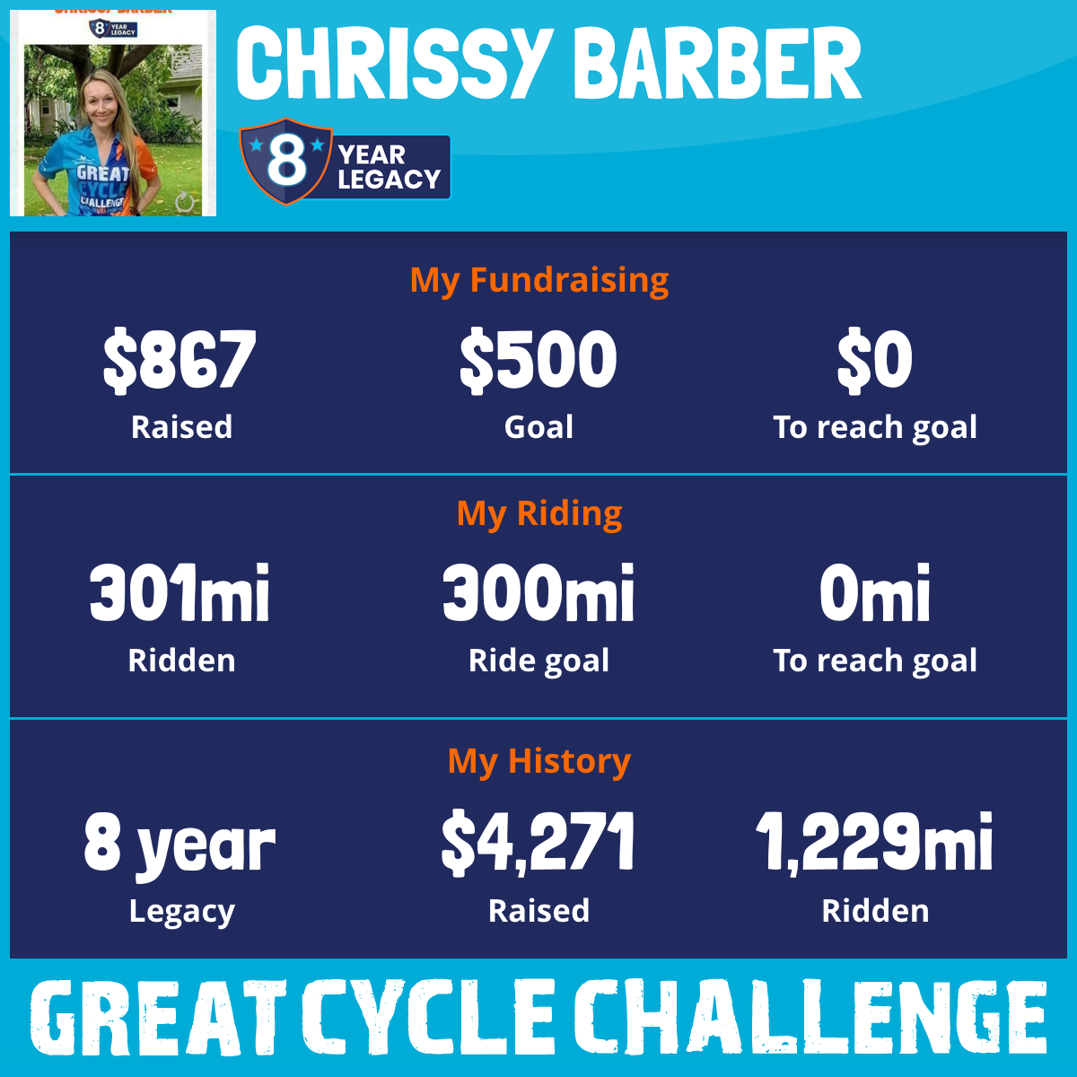 Hello family/friends, This September I'm riding 300 miles in the Great Cycle Challenge! This challenge helps raise awareness and lifts spirits in the hope of finding a cure to fight kids' cancer!