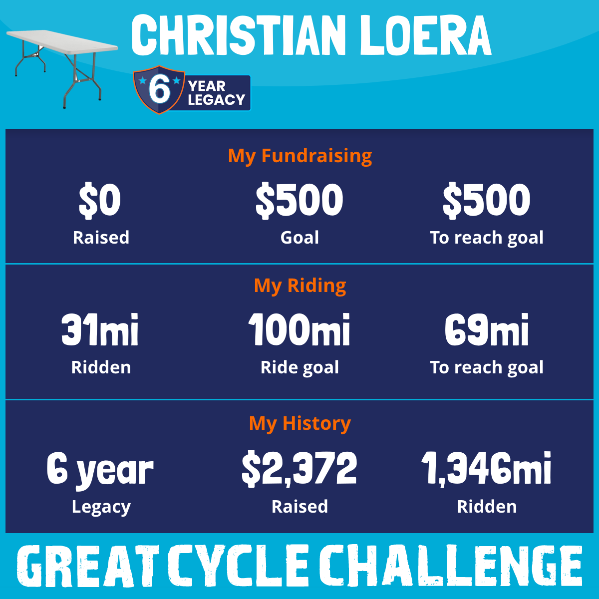 Tabling into action this September, I am teaming up with the spirit of tables to take on the Great Cycle Challenge - a pedal-powered fight against kids' cancer!