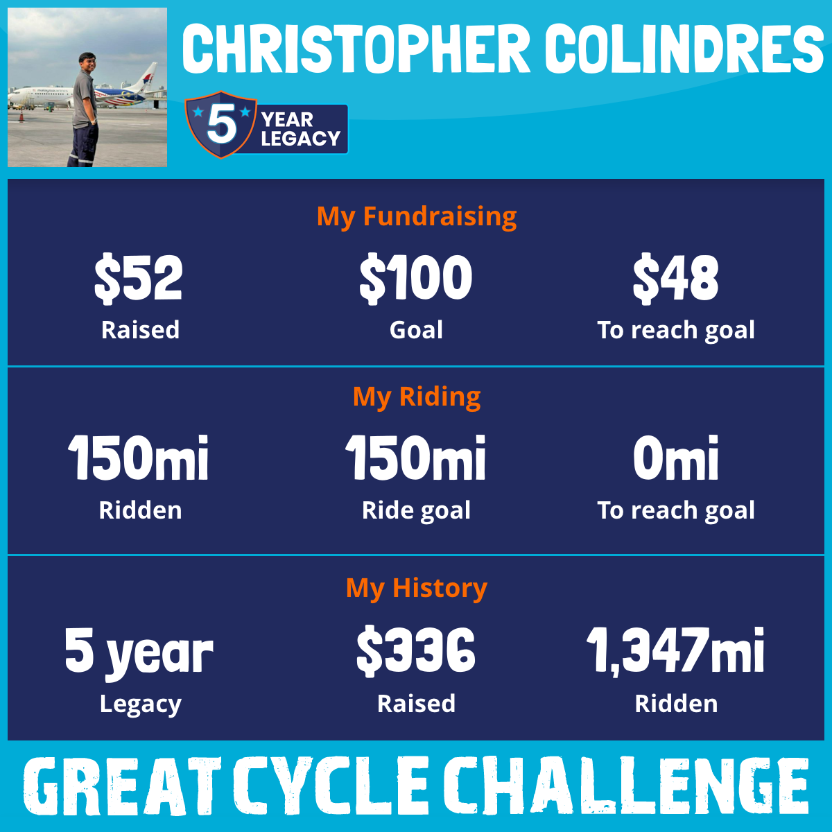 150 mi Ridden$52 Raised2025