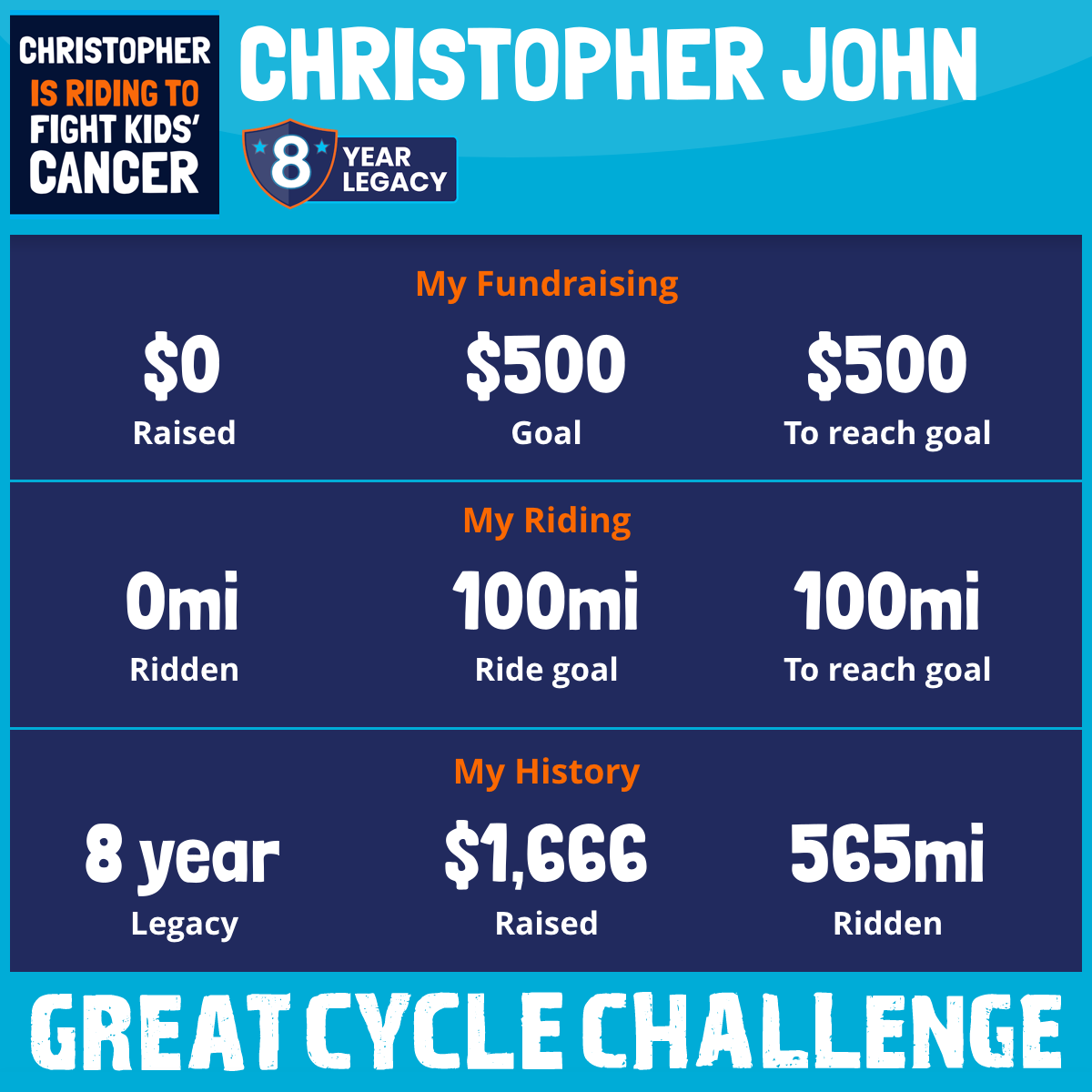 I am riding 100 mi in memory of my loved one, Family members who are missed.. Please sponsor me and support my challenge to fight kids' cancer and save little lives.