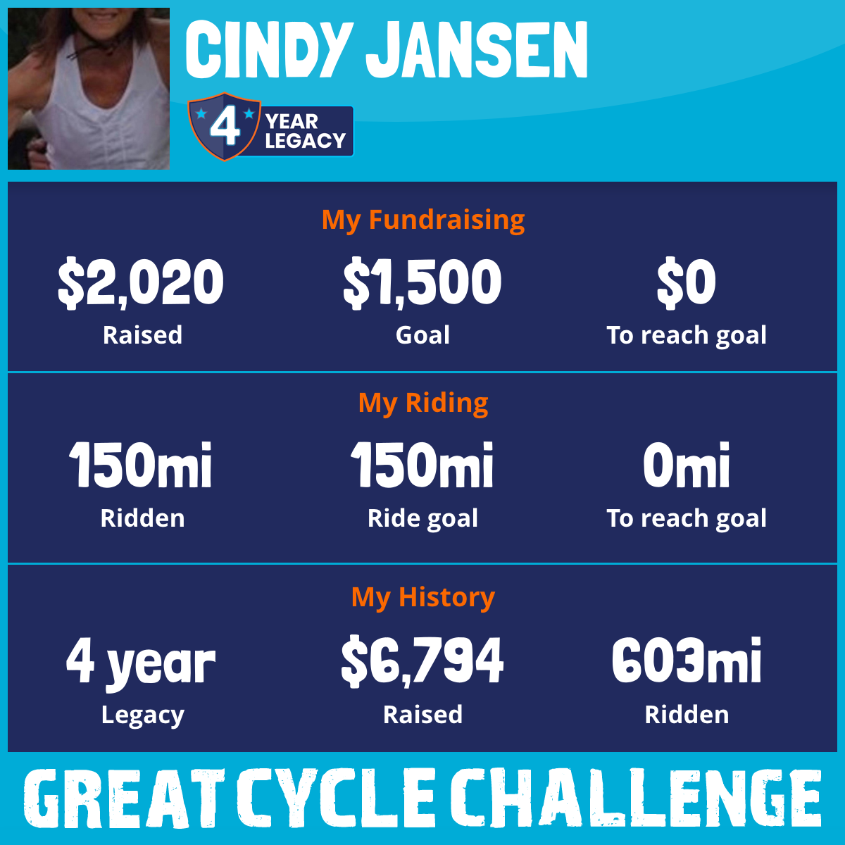 150 mi Ridden$2,020 Raised2025