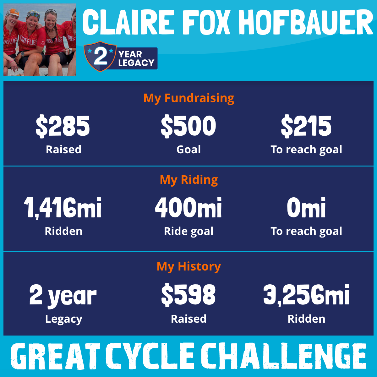 1,416 mi Ridden$285 Raised2025