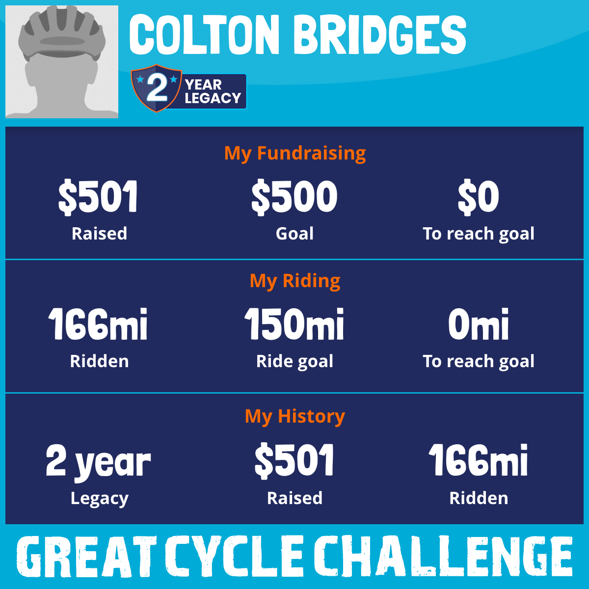 I am riding 150 mi to fight kids' cancer and save little lives. Please sponsor me to support my challenge!