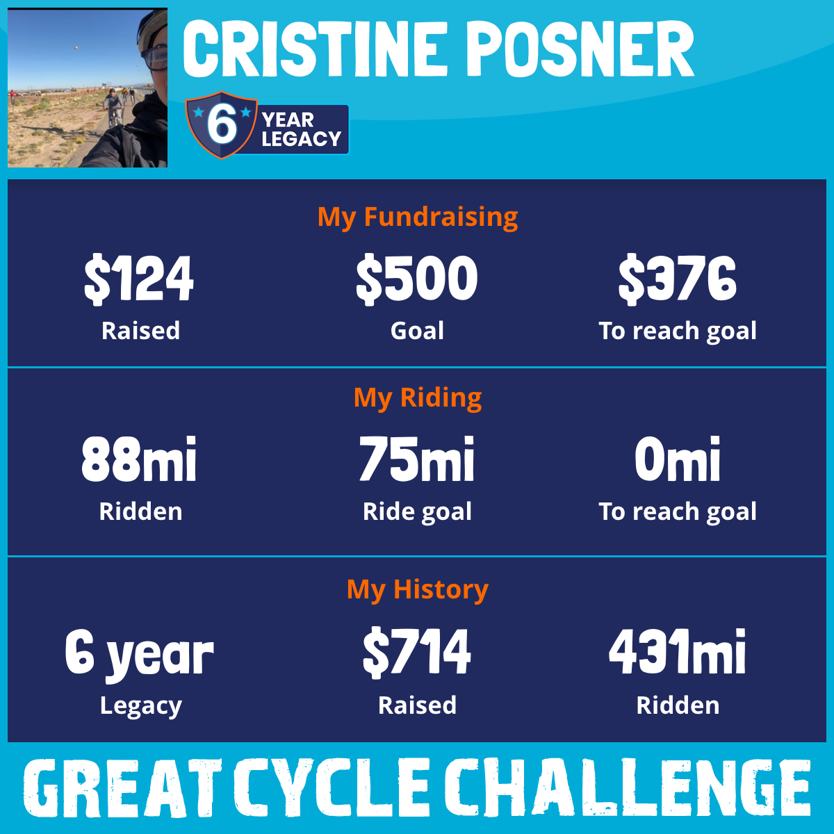 So I am raising funds through my challenge to help these kids and support Children's Cancer Research Fund to allow them to continue their work to develop lifesaving treatments and find a cure for childhood cancer.