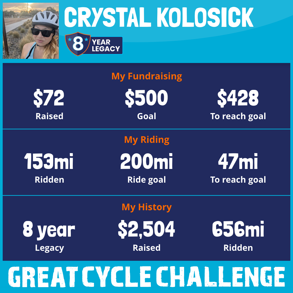 I am riding 200 mi to fight kids' cancer and save little lives. Please sponsor me to support my challenge!