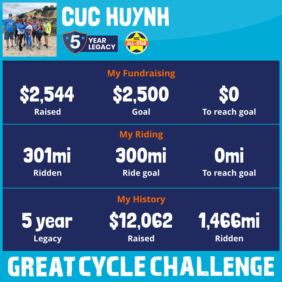 300 mi Ridden$3,792 Raised2023