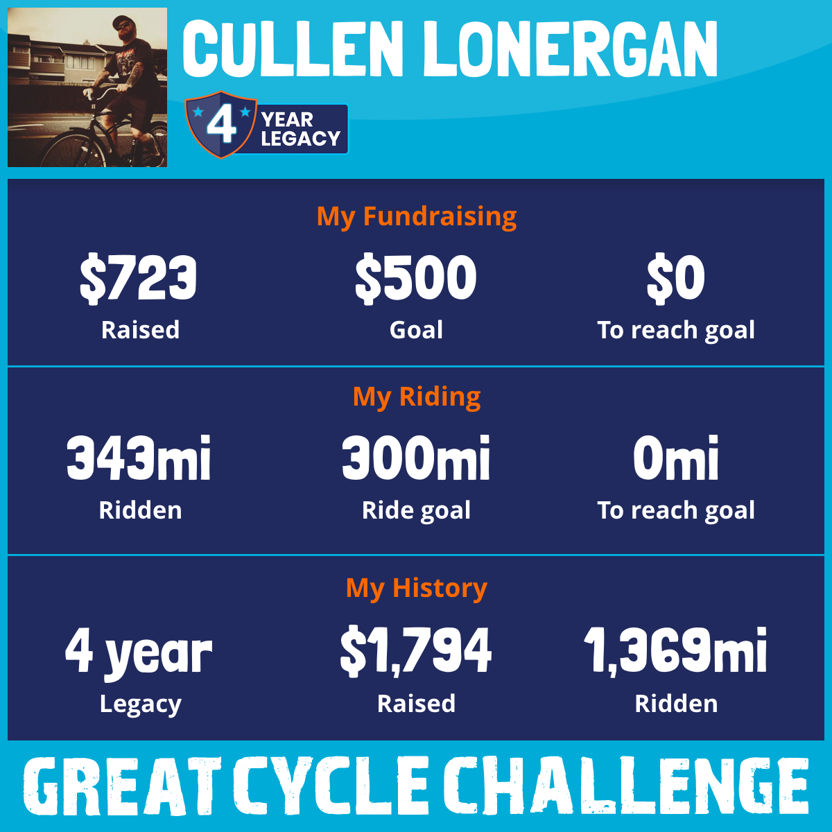 I am riding 300 mi to fight kids' cancer and save little lives. Please sponsor me to support my challenge! I will be donating $1 for every mile I ride.