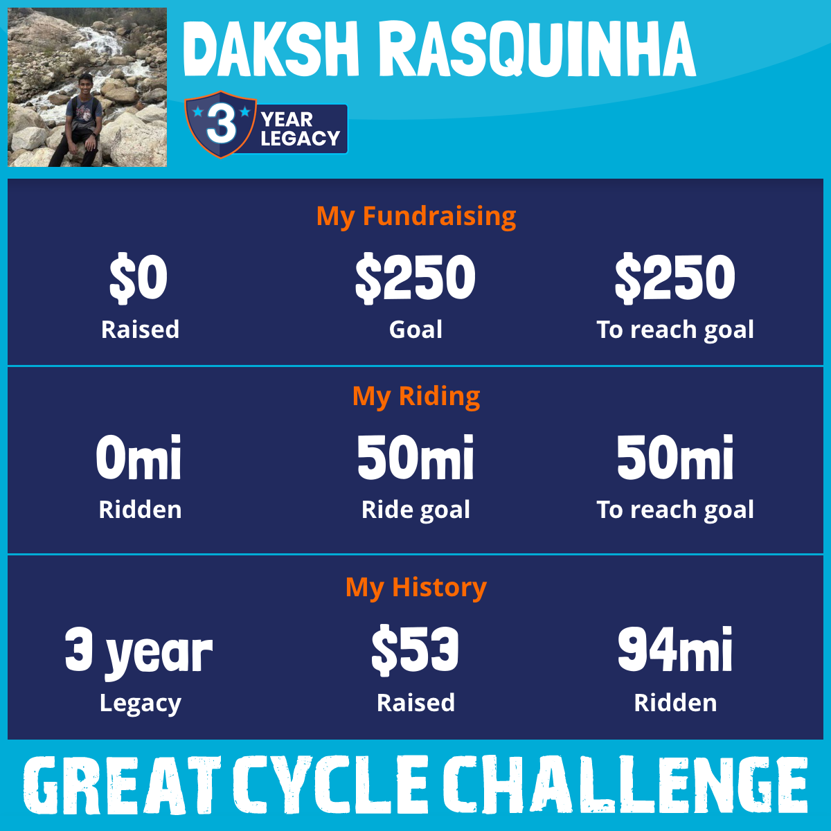 I've raised $0 My goal is $100 Donate Now