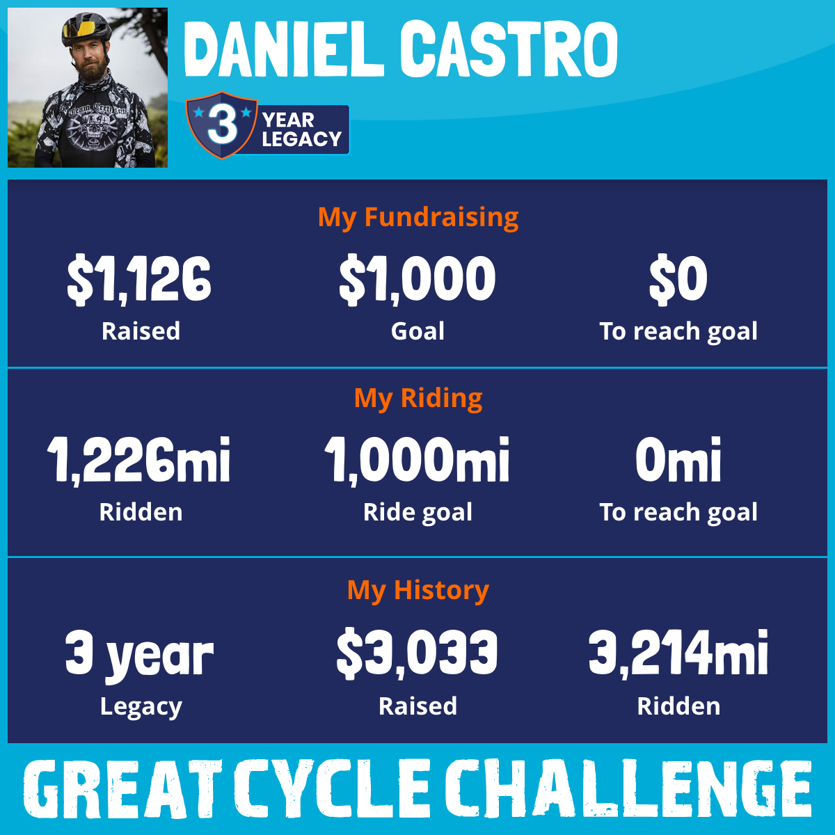 1,226 mi Ridden$1,126 Raised2025