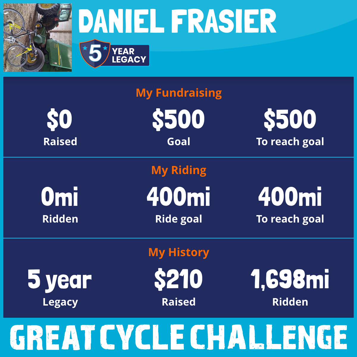 I am riding 400 mi for Relative Uncle Guy. Please sponsor me and support my challenge to fight kids' cancer and save little lives.