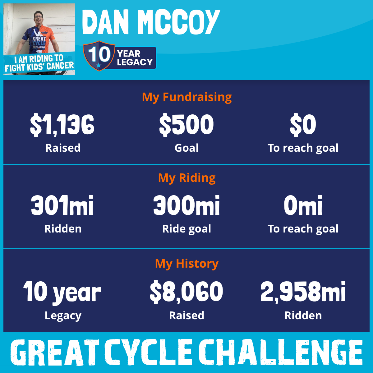 I am riding 300 mi to fight kids' cancer and save little lives. Please sponsor me to support my challenge!