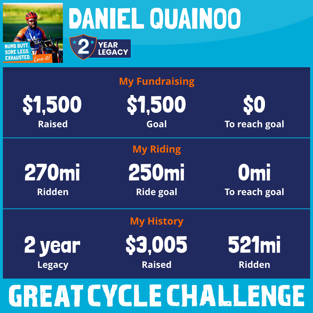 251 mi Ridden$1,505 Raised2022