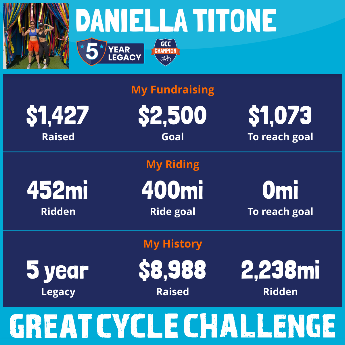 452 mi Ridden$1,427 Raised2025