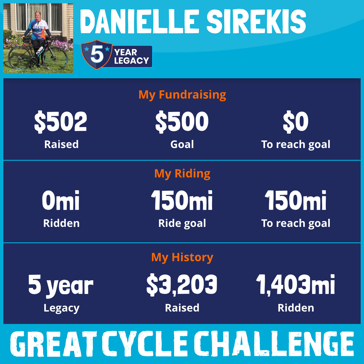 2025 Update - I am excited to get back to doing something I love: riding and supporting an amazing cause. I changed careers, and fitness took a back seat. I see my previous message, and the funny thing is that I accidentally enrolled in the 2025 challenge, but it came at a perfect time. I ride this year in honor of those fighting an ongoing battle with cancer and their health; there are so many people who are doing it silently. Let’s show them our support! Though my mileage goal pales in comparison to previous years, I will still give it my all. I set it for 150 miles for the month of September and, as always, I will increase it if I meet that. I started this challenge riding for my Uncles and Grandmother; I will continue to honor them in everything I do in life...including adding more miles toward the Great Cycle Challenge!