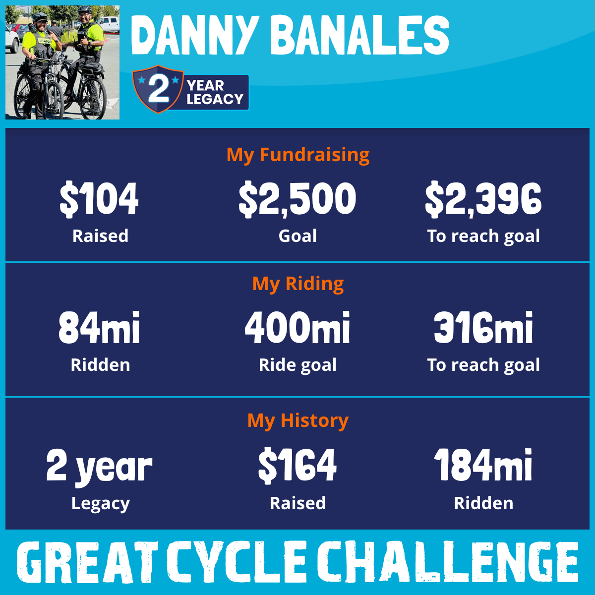 Back in 2019 on my first attempt , I crushed my ride goal of 100 miles with ease, but fell short of my fundraising target. This year, I’m going bigger: 400+ miles and a goal to raise $2,500 to help kids battling cancer.