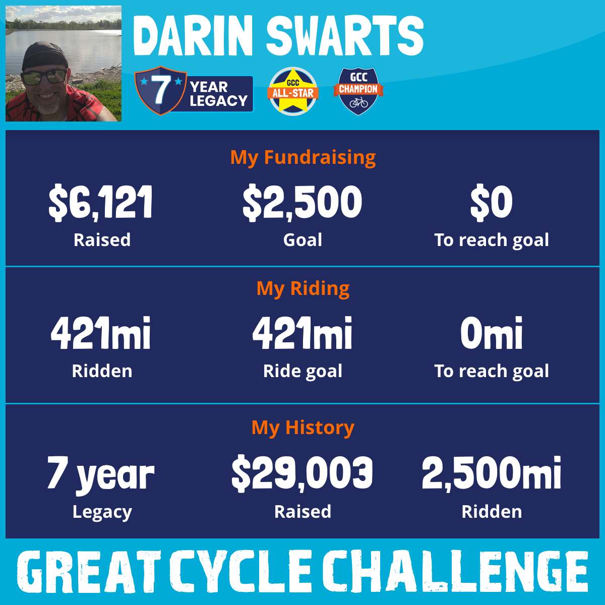 My story started quite a few yrs ago really. I watched my best friend Shawn battle this disease multiple times. The strength and courage he showed was simply amazing, life changing for me. This experience put me into a mission that I didn't realize I'd want or need. Here I am heading into year 7 having raised over $22,000 thru friends and family and been blessed more than I could count thru this journey.