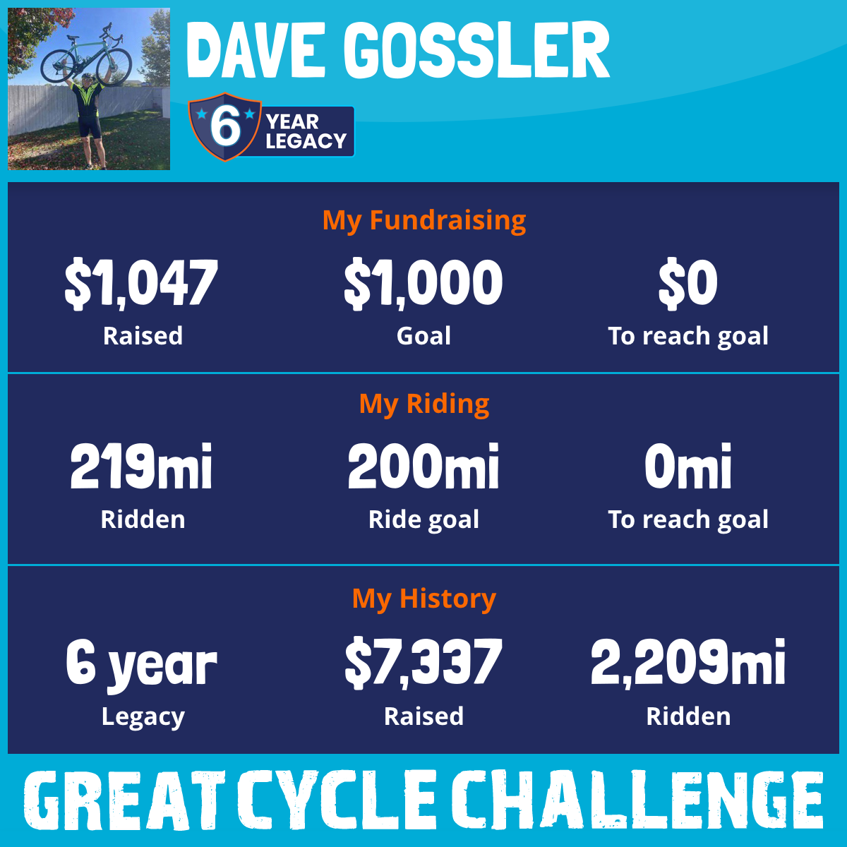 219 mi Ridden$1,047 Raised2025