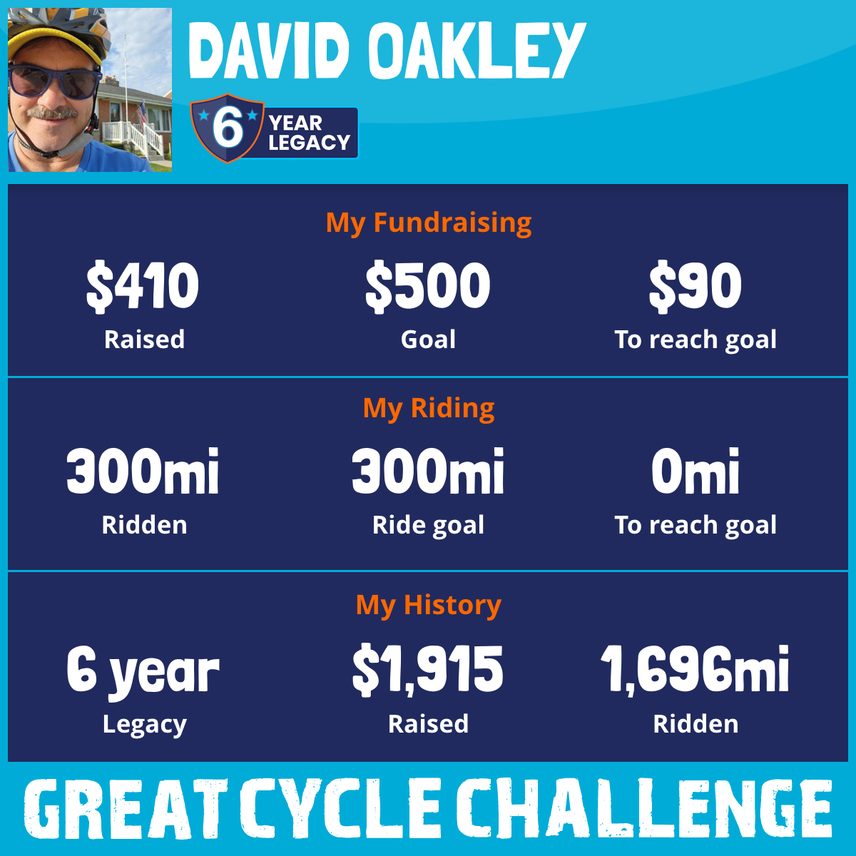 I am riding 300 mi in memory of my father in law, Clark and Steven McKibben. Please support my challenge to fight kids' cancer and save little lives.