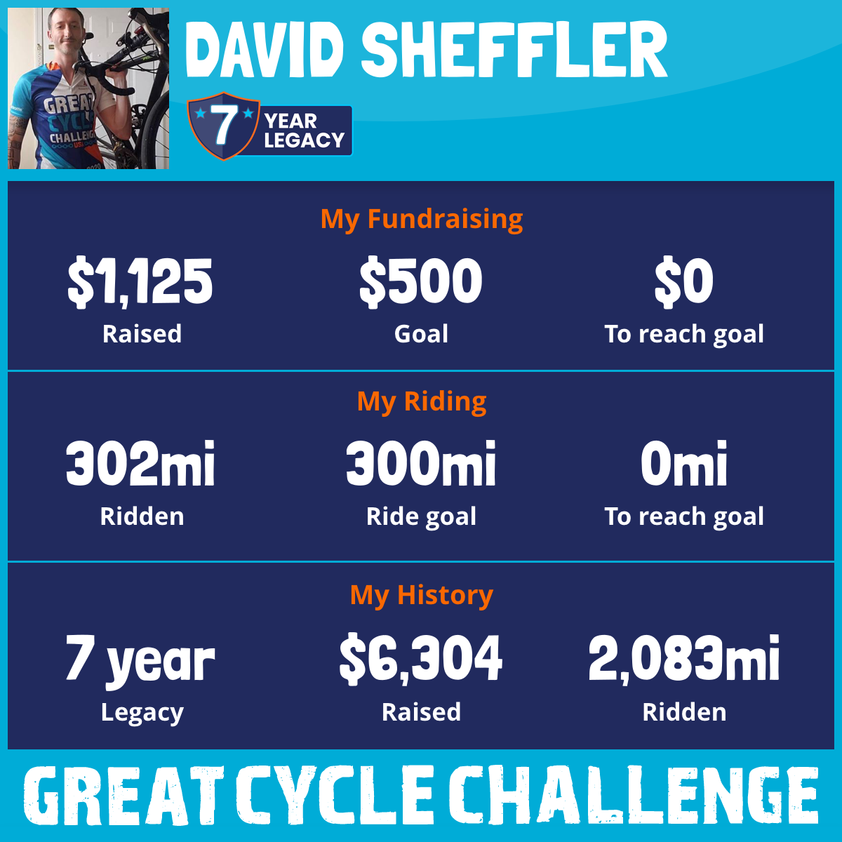 302 mi Ridden$1,125 Raised2025