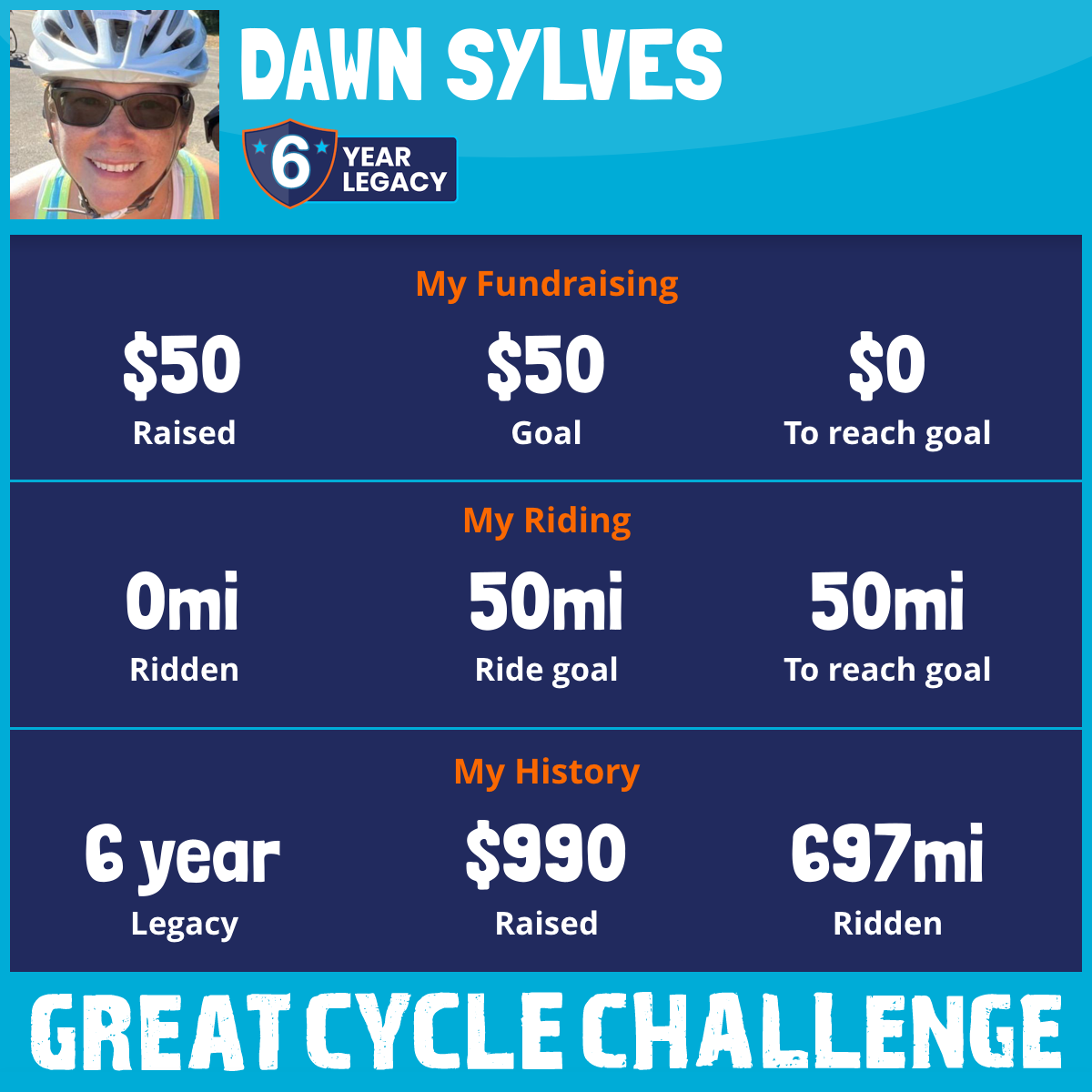 I am riding 50 mi for Dad. Please sponsor me and support my challenge to fight kids' cancer and save little lives.