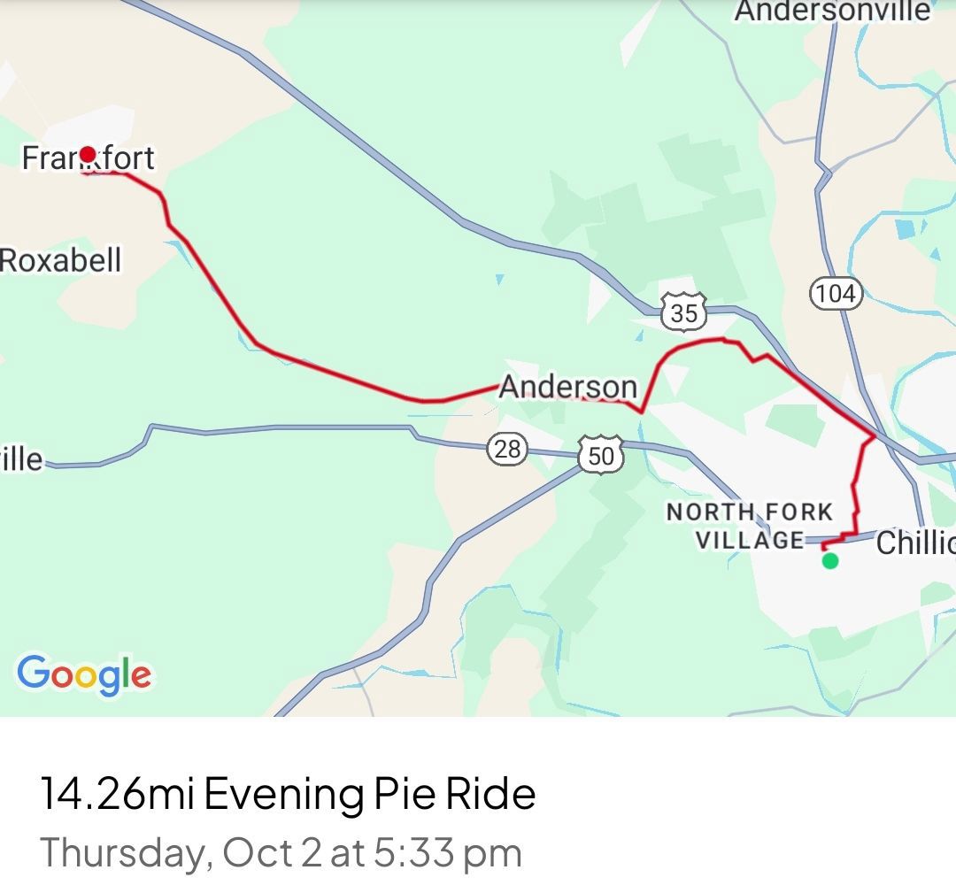 14.3 mi ride - Pie Ride - Thursday, October 2, 2025