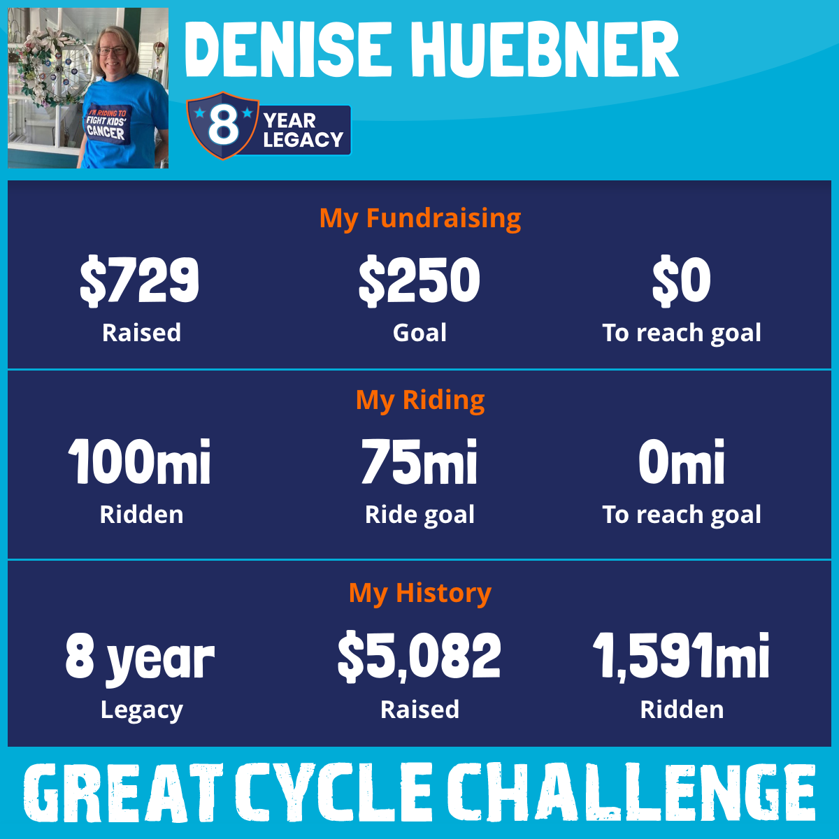 This year the government choose to reduce funding for pediatric cancer. So I’m back riding again for my 8th year. Please support me by donating on Wednesday 9/10 when special donors provide funds to match all donations that day. TY