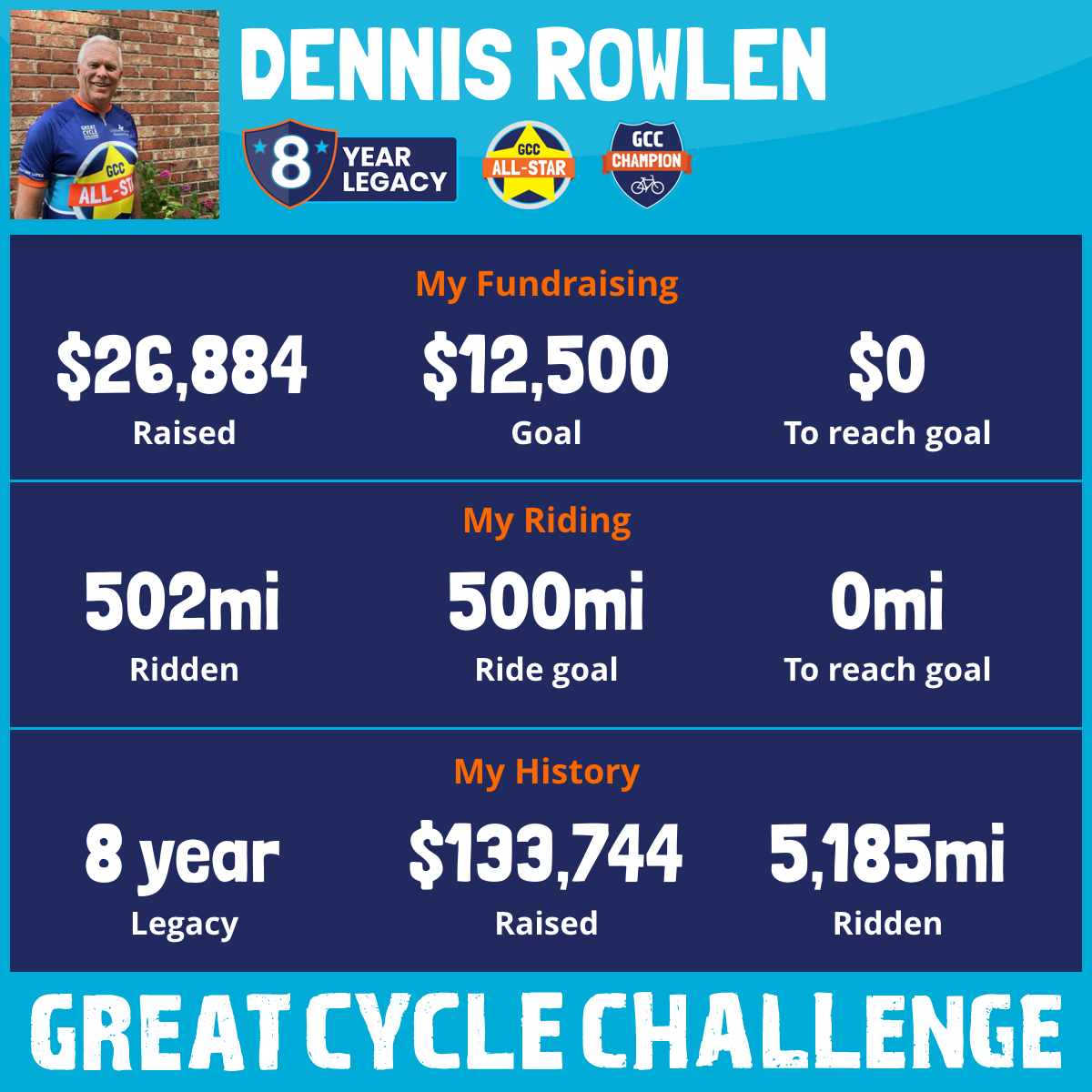 502 mi Ridden$27,396 Raised2025