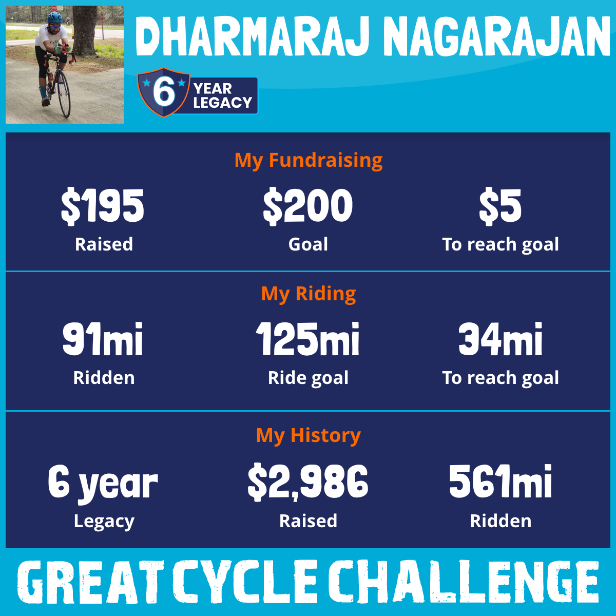 53 mi Ridden$802 Raised2020