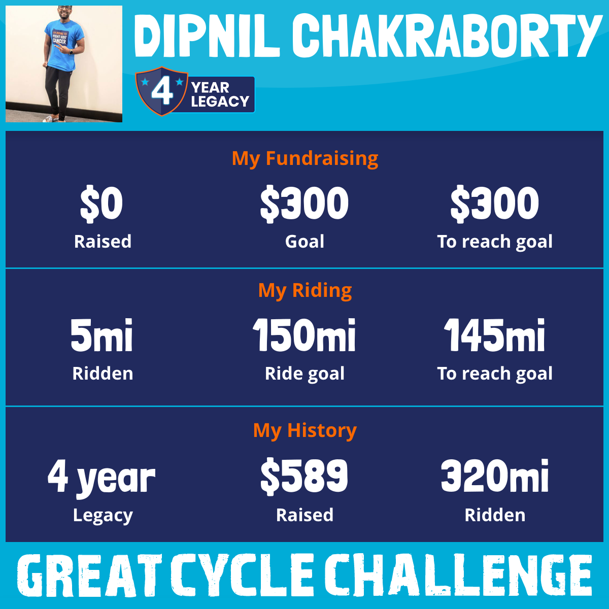 I am riding 150 mi to fight kids' cancer and save little lives. Please sponsor me to support my challenge!