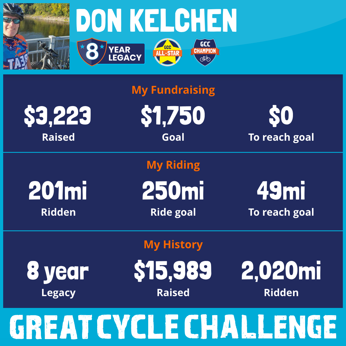 201 mi Ridden$3,223 Raised2025