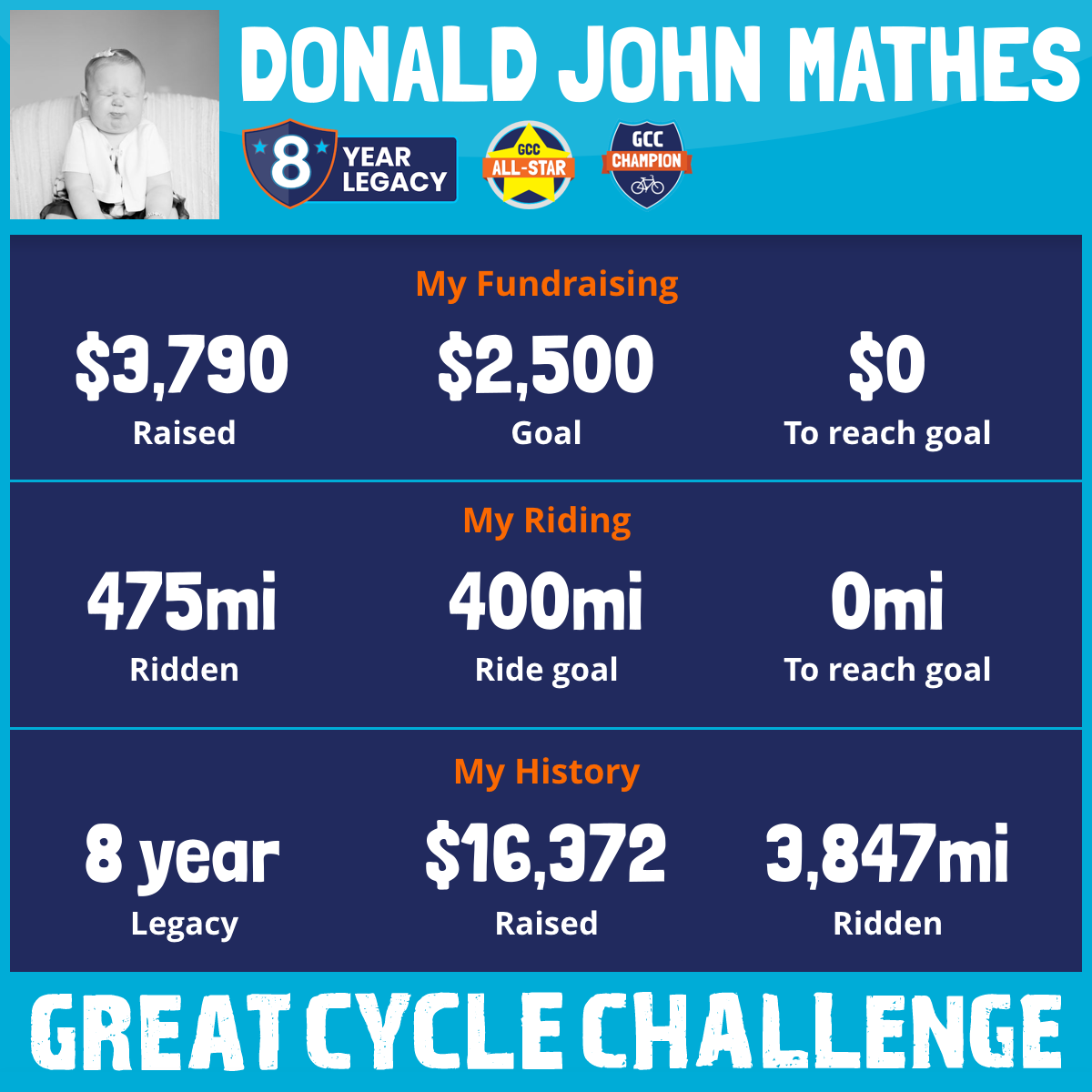 I am riding 400 mi to fight kids' cancer and save little lives. Please sponsor me to support my challenge!