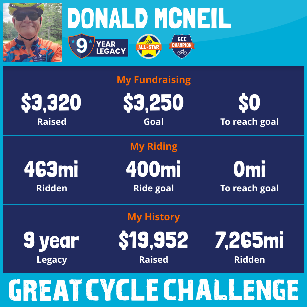 463 mi Ridden$3,320 Raised2025