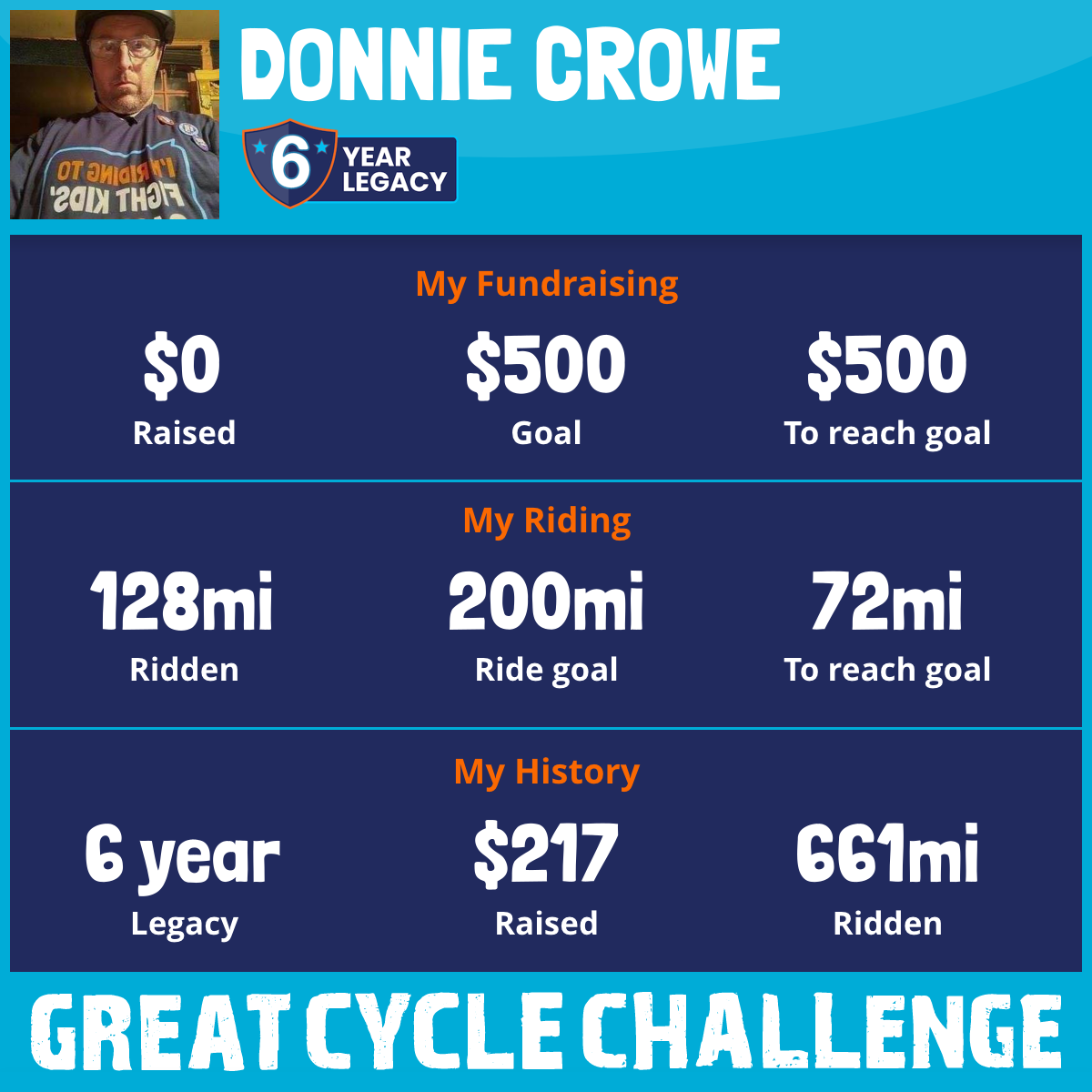 So I am raising funds through my challenge to help these kids and support Children's Cancer Research Fund to allow them to continue their work to develop lifesaving treatments and find a cure for childhood cancer.