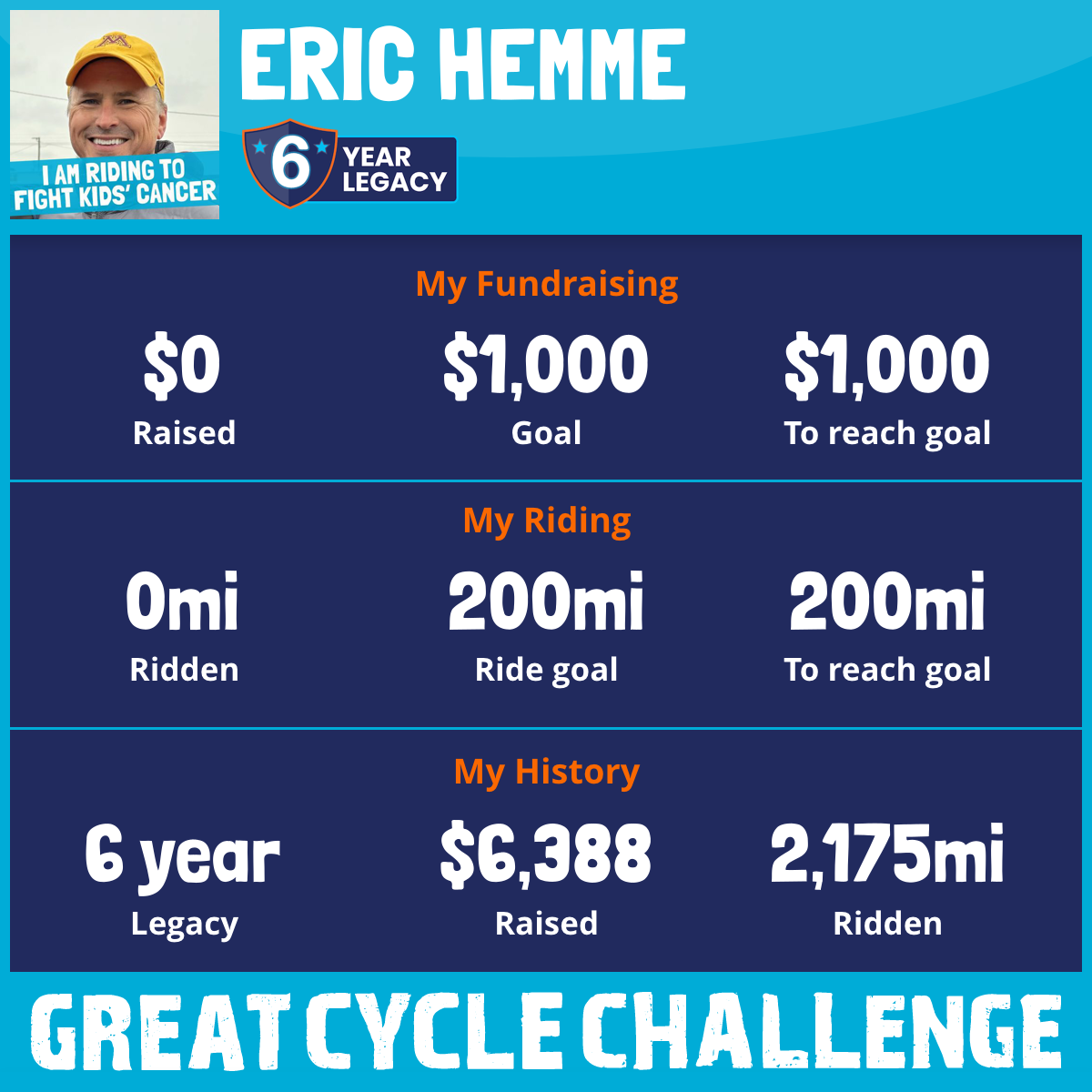 I am riding 200 mi to fight kids' cancer and save little lives. Please sponsor me to support my challenge!