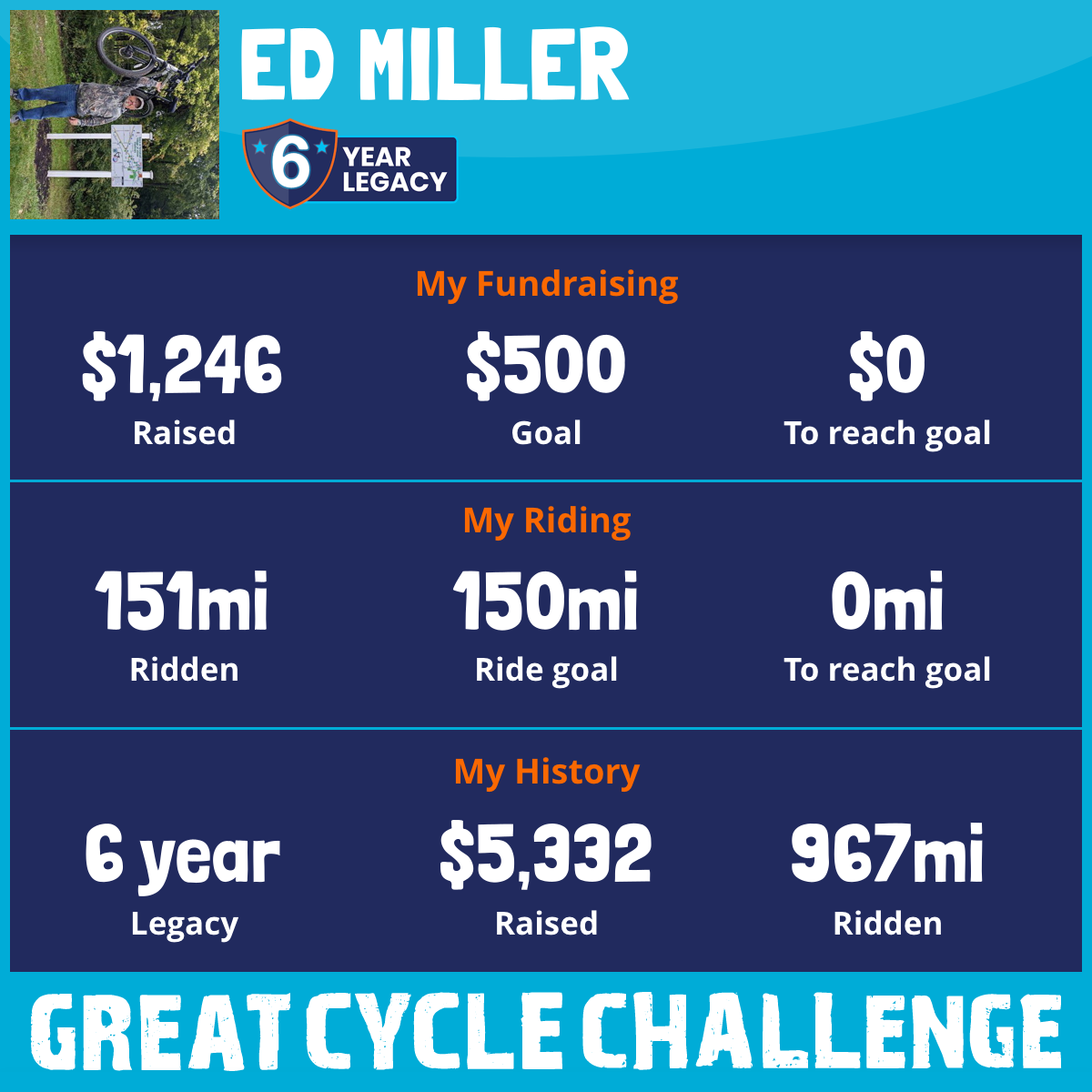 151 mi Ridden$1,246 Raised2025