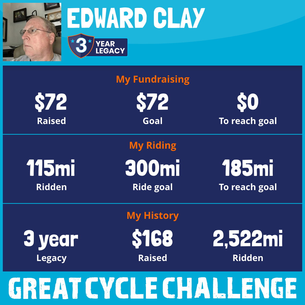 I am riding 300 mi in memory of Joan Clay and Diana O'conner. Please sponsor me and support my challenge to fight kids' cancer and save little lives.