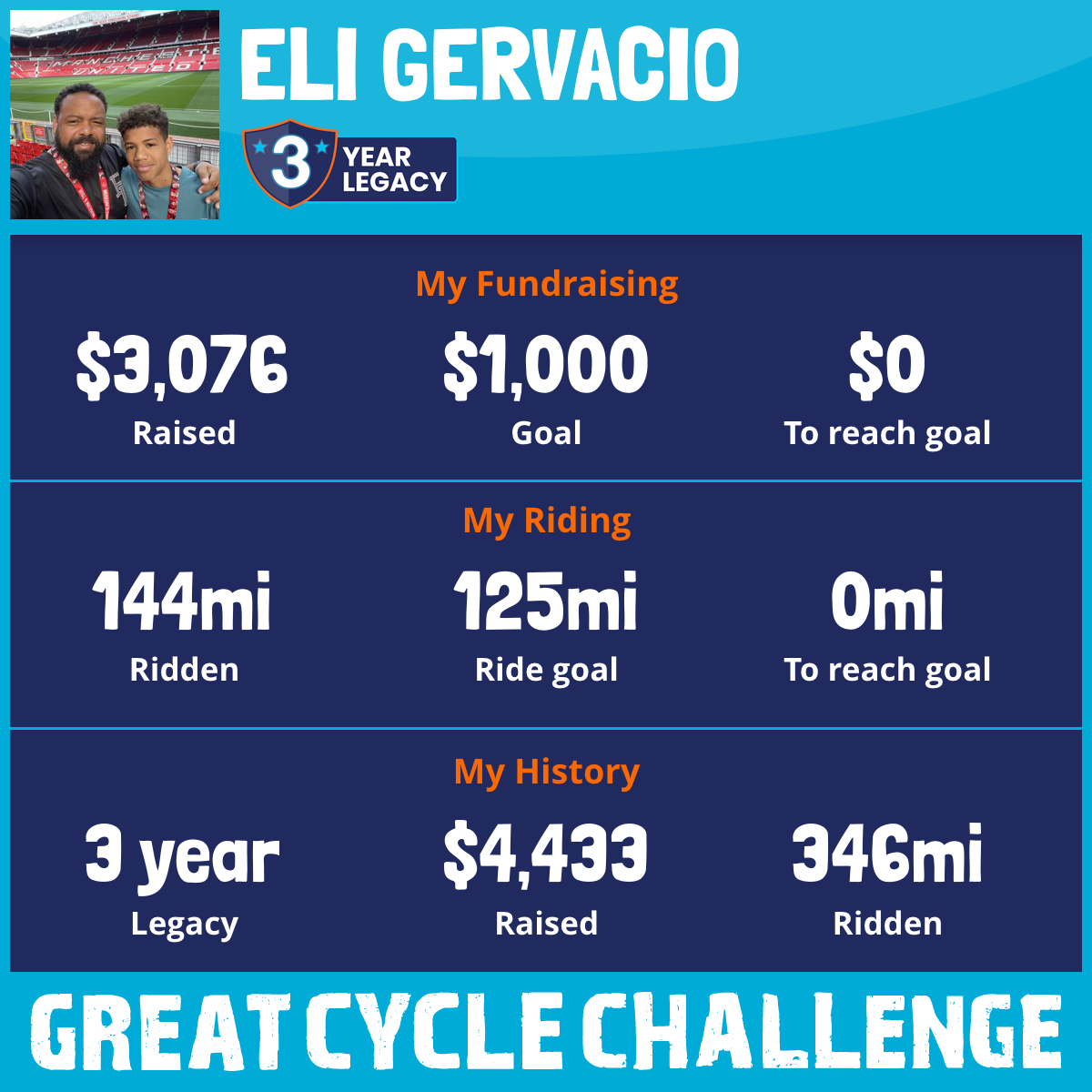144 mi Ridden$3,076 Raised2025