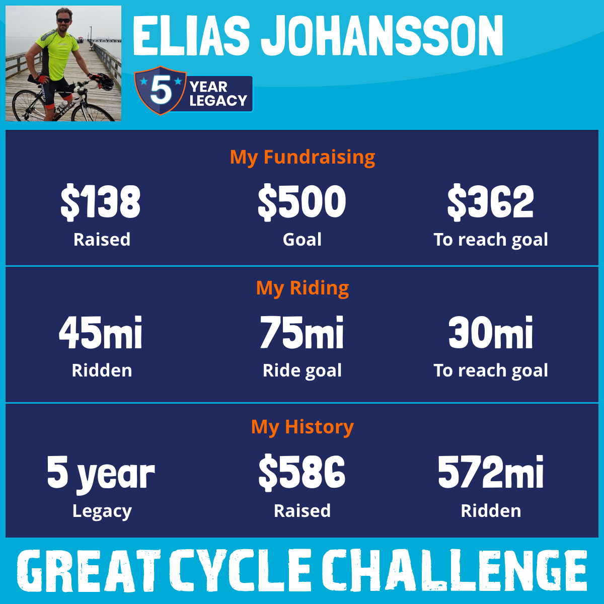 45 mi Ridden$138 Raised2025