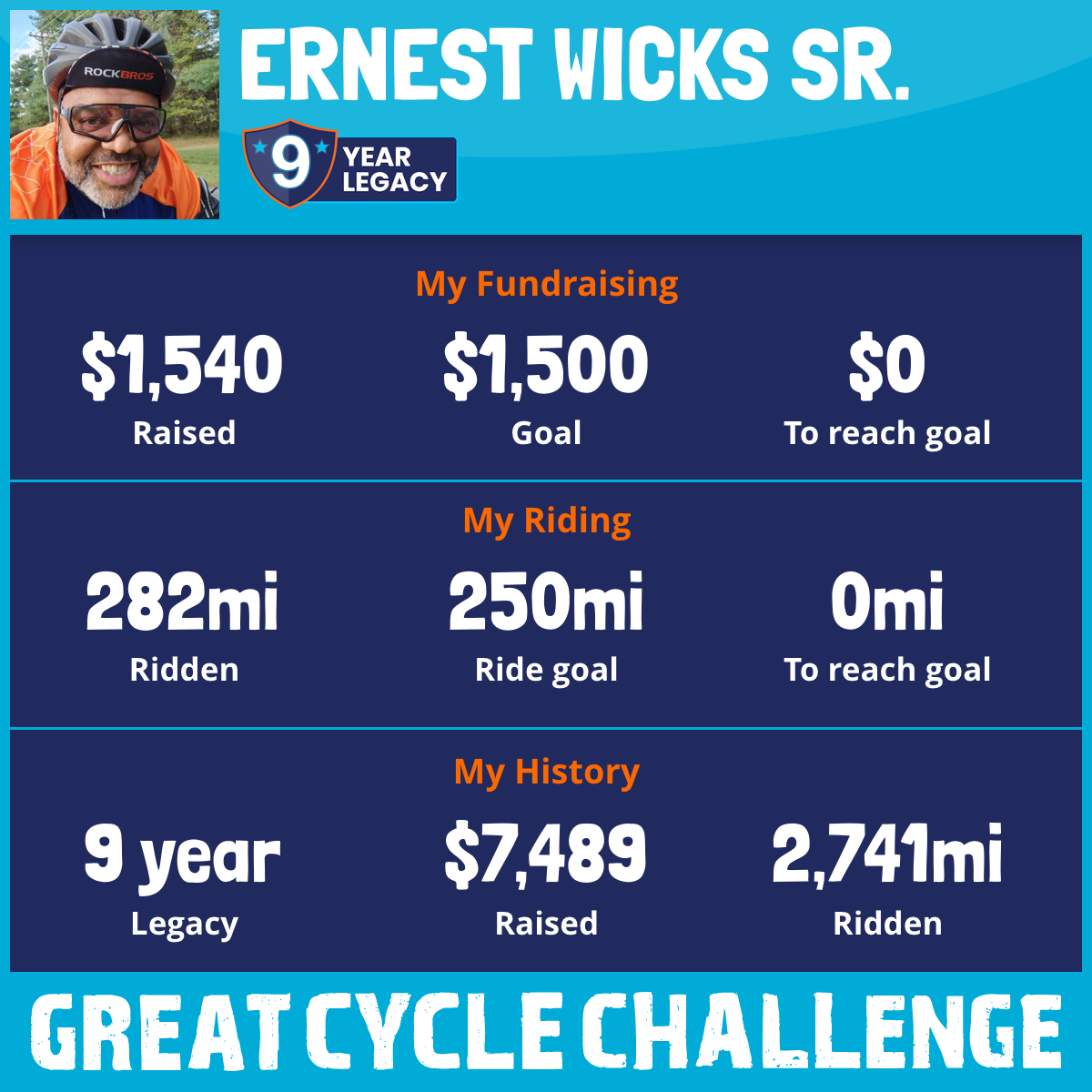 282 mi Ridden$1,540 Raised2025