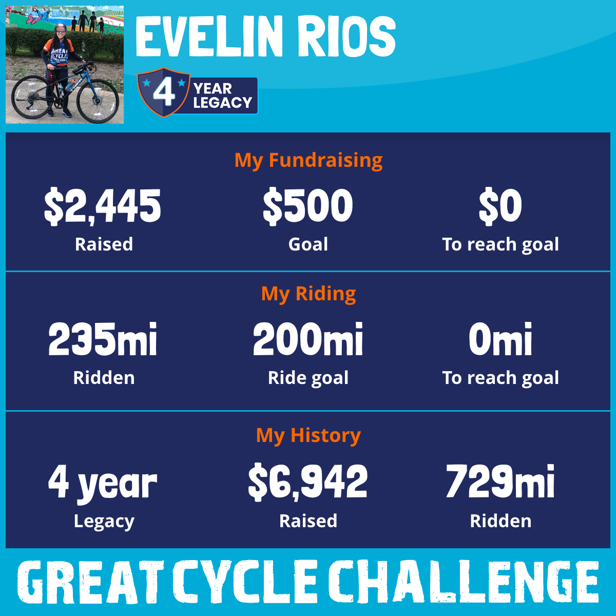256 mi Ridden$2,507 Raised2025