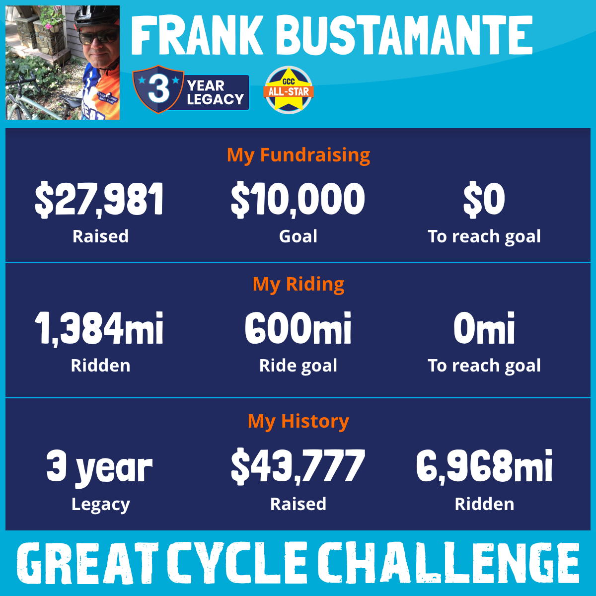 3,500 mi Ridden$28,085 Raised2025