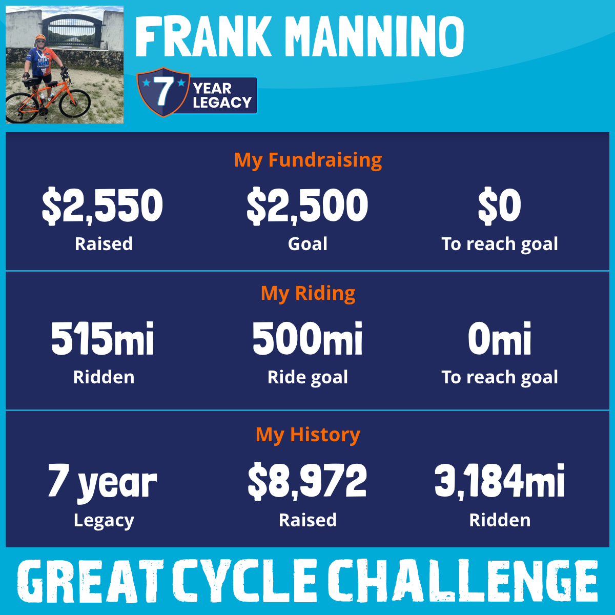 I have done this right before last year the great cycle challenge and I am going to do it this year but I won’t start until September 1 through September 30 so please donations at that time