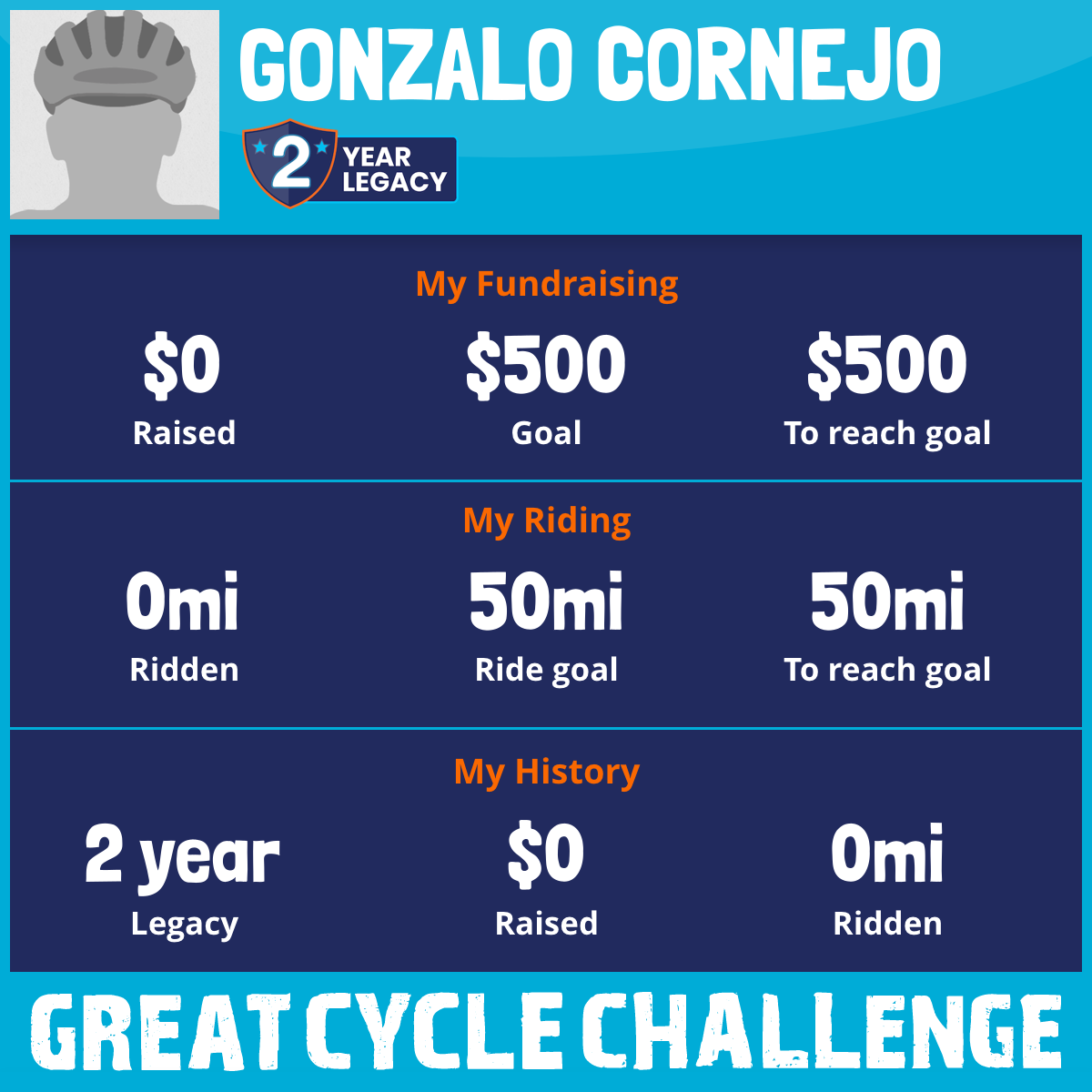 I've raised $0 My goal is $500 Donate Now