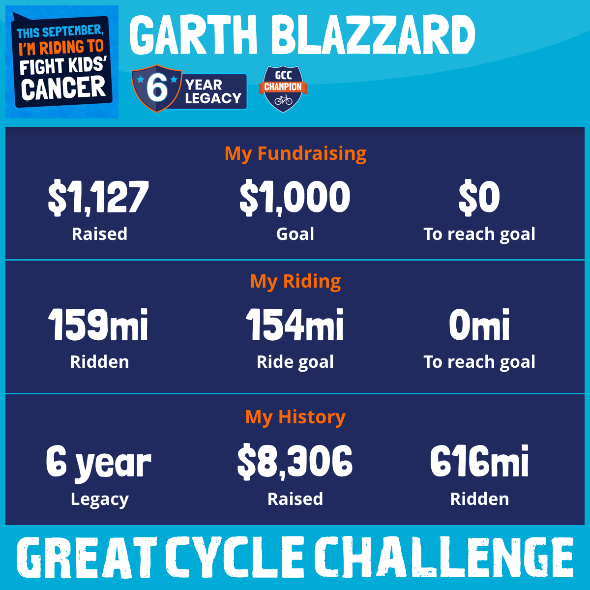 This September, I am taking part in the Great Cycle Challenge to fight kids' cancer!