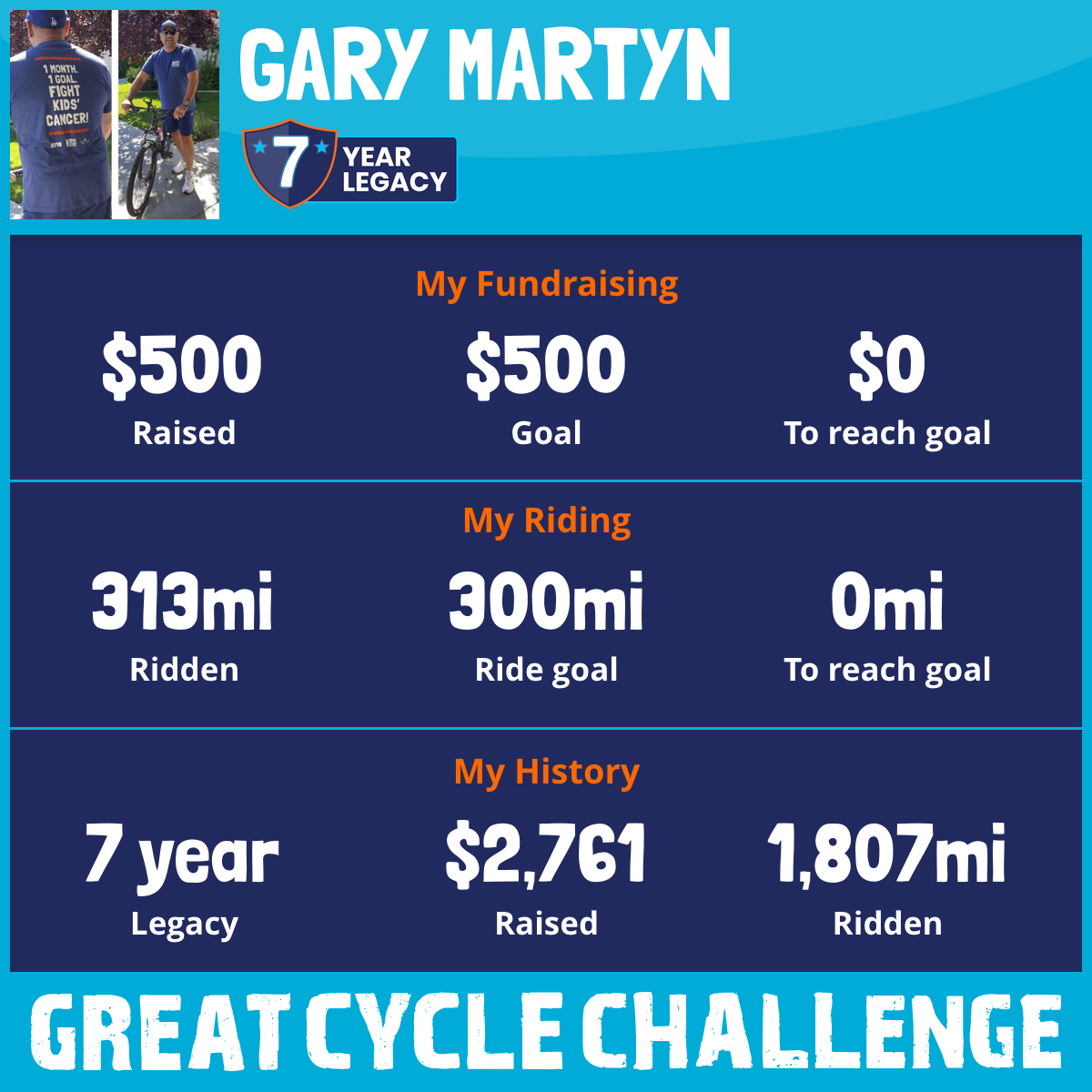 This, is my 7th year of participating in the Great Cycle Challenge to fight kids' cancer! Why? Because right now, cancer is the biggest killer of children from disease in the United States. Over 15,700 children are diagnosed every year, and sadly, 38 children die of cancer every week.