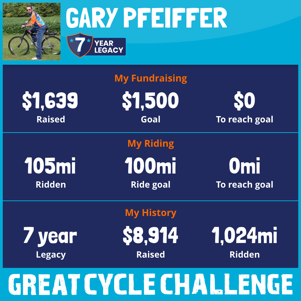 This year I am riding to Honor my Sister in law Peggy Pfeiffer who lost her battle with Cancer.