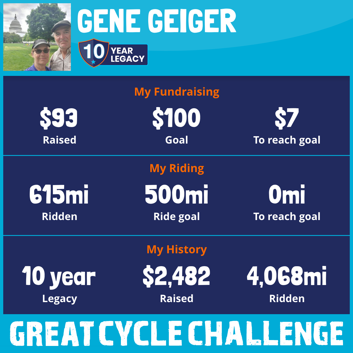 I am riding 500 mi in memory of my parents, Herbert and Delores Geiger. Please sponsor me and support my challenge to fight kids' cancer and save little lives.